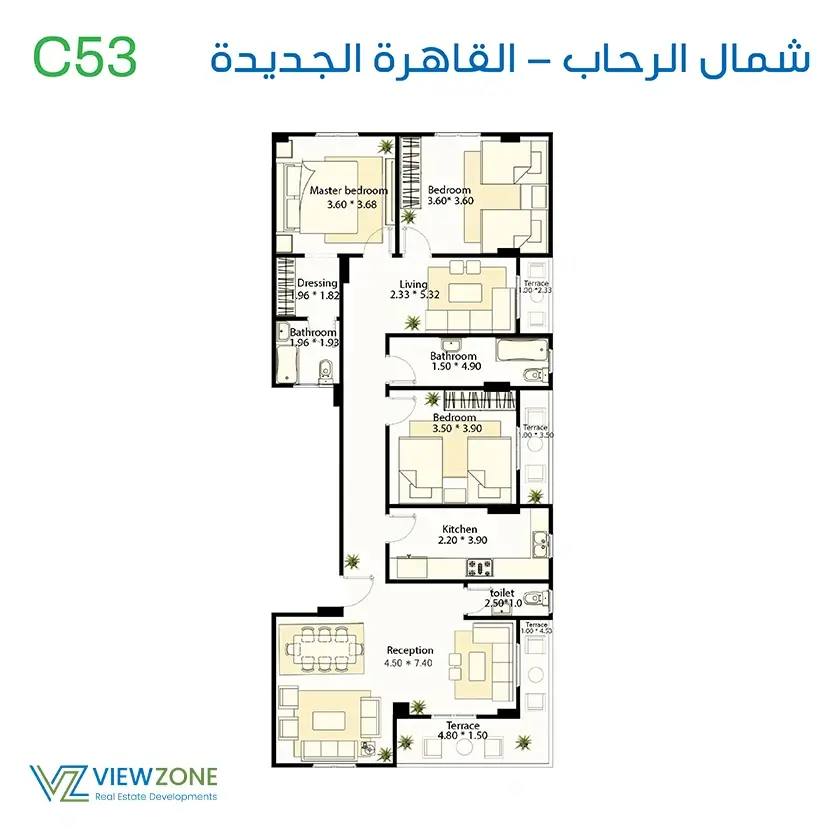 View Zone Real Estate developments introduces Project C53, a unique opportunity to own a home in a highly strategic and elevated location in North Rehab — combining direct accessibility, open views, and sophisticated design.